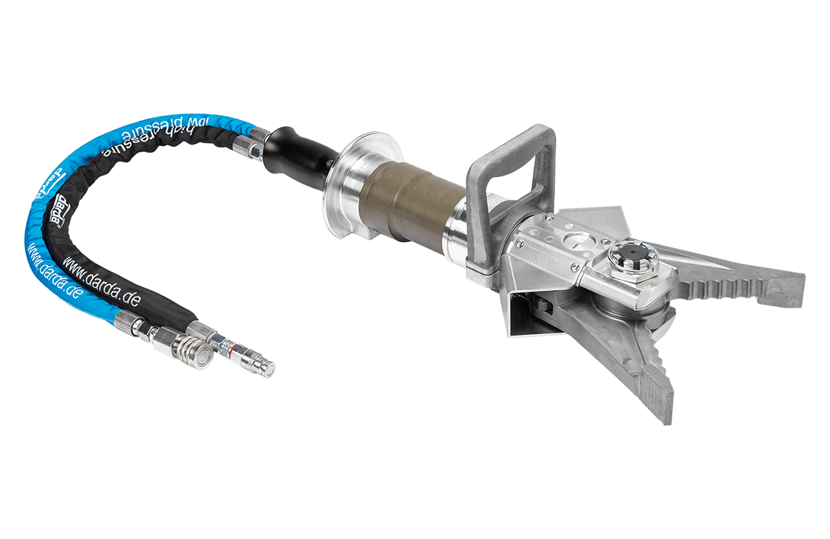 Affidabilità idraulica e massima resistenza. Tubi multistrato con protezione antiscoppio collegano in modo sicuro la cesoia combinata all’unità idraulica ad alta pressione (fino a 500 bar). La valvola integrata consente di controllare apertura e chiusura in ogni fase del lavoro. I componenti in acciaio e alluminio di alta qualità garantiscono lunga durata anche nelle condizioni più gravose.